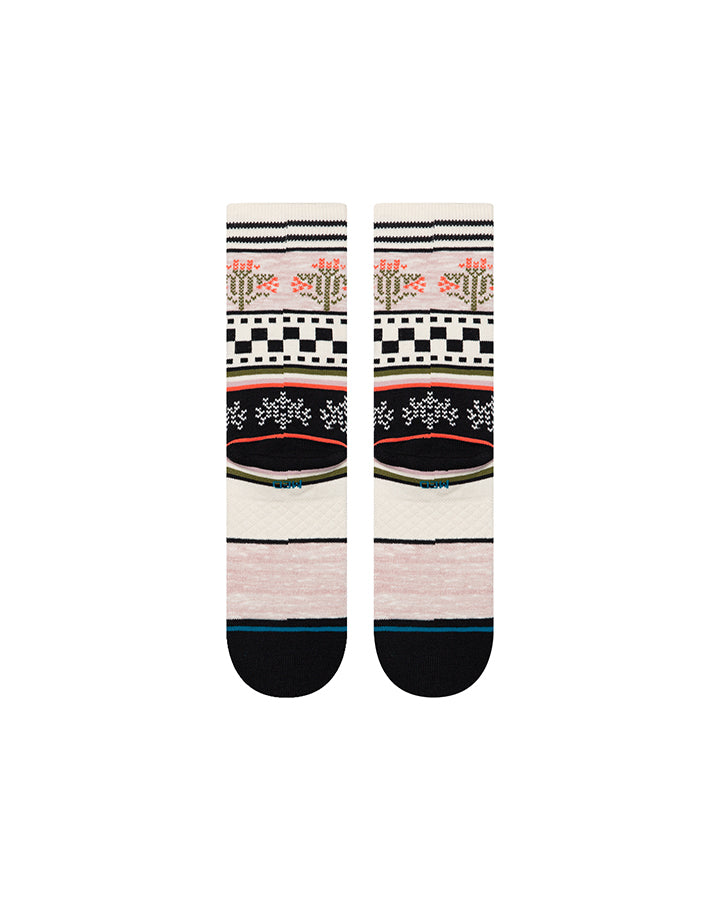Die Winter Bloom Crew in zartem Lilac-Ton verbindet elegantes Winterflair mit langlebiger Alltagstauglichkeit. Das mittelhohe Crew-Modell sitzt über dem Knöchel und kommt mit nahtloser Zehenpartie, verstärkter Ferse, mittelstarker Polsterung und gezieltem Fußgewölbe-Support für durchgehenden Komfort. Die Materialmischung von 70 % gekämmter Baumwolle, 16 % Nylon, 12 % Polyester und 2 % Elastan sorgt für atmungsaktive Weichheit, Formstabilität und angenehme Elastizität.